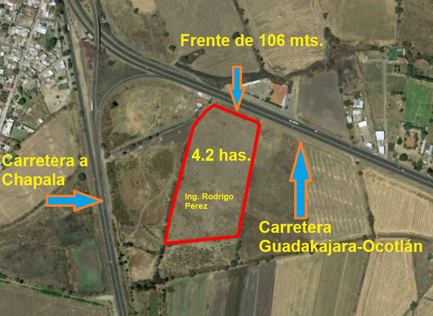 Con 106 m de frente a la carretera Gdl-Ocotlán, a 100m de la carretera Gdl-Chapala y a 1km del macro-libramiento.
